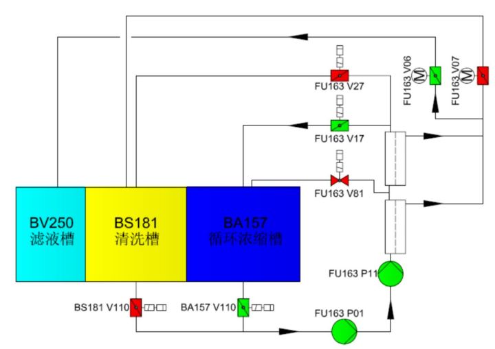 系统包含工作罐,清洗罐,纸带过滤机,膜组件,管路系统,控制系统,机架等。