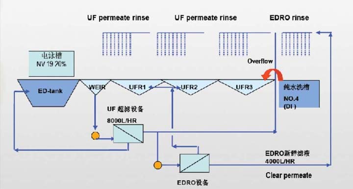 UF滤液经过EDRO 纯化后用于最终水洗, 形成闭路循环工艺