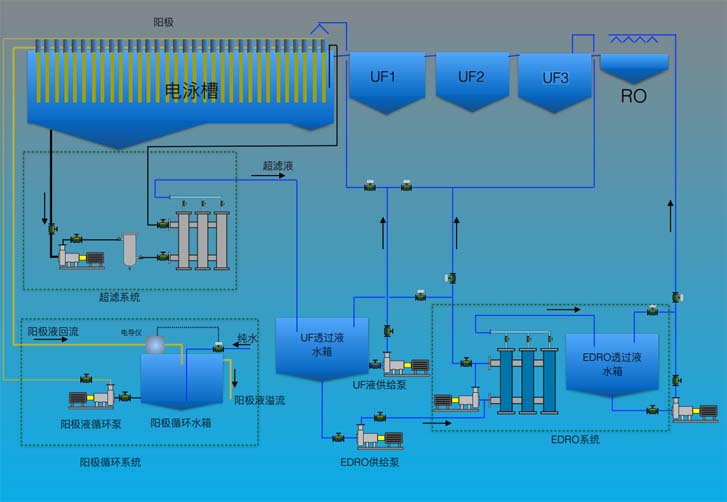 2、维护电泳槽液参数稳定:通过排放超滤液可以去除电泳槽内不断产生的杂质离子和小分子树脂,控制槽液电导率,维护槽液的稳定。