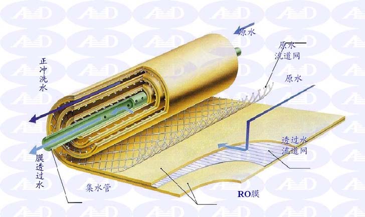 因为它和自然渗透的方向相反,故称反渗透。根据各种物料的不同渗透压,就可以使用大于渗透压的反渗透压力,即反渗透法,达到分离、提取、纯化和浓缩的目的。